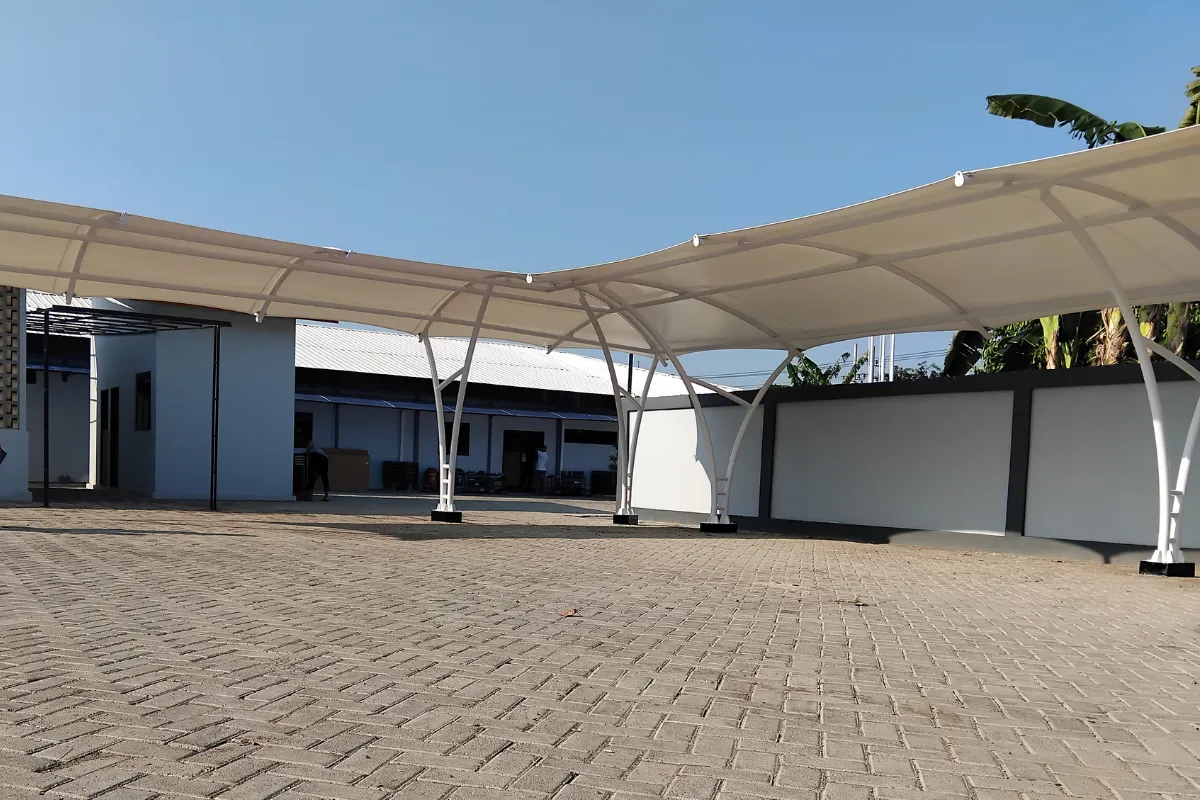 Pilihan terbaik jika Anda belum memiliki rangka atap. Kami kerjakan dari nol: desain struktur, fabrikasi besi, hingga pemasangan kain sampai tuntas.